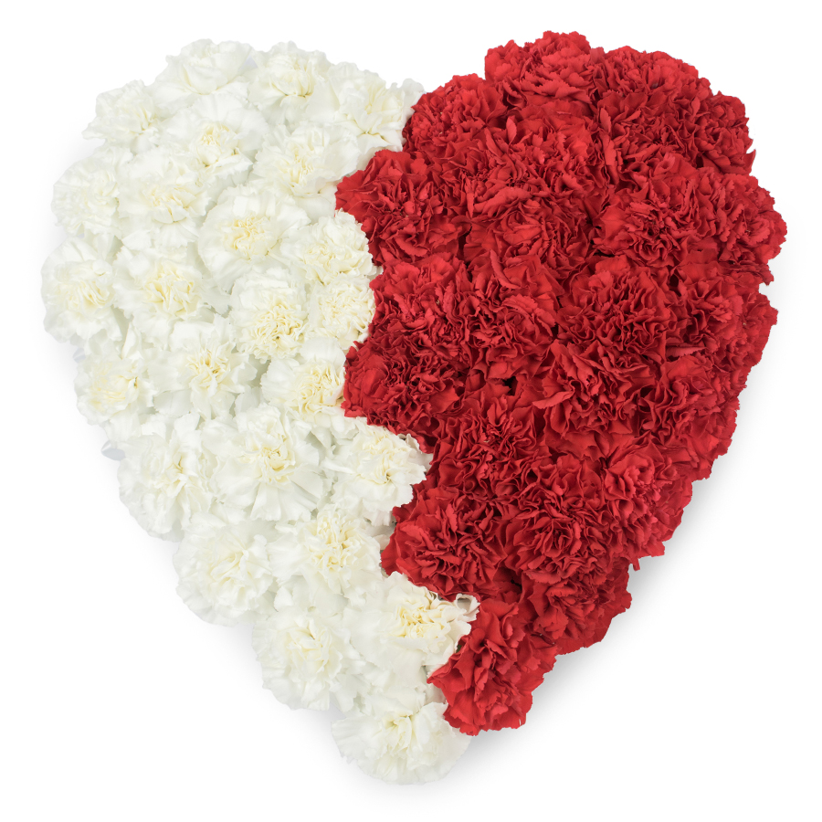 Introducing our graceful heart-shaped mixed carnations arrangement by Handy Flowers. Combining white and red carnations, this bouquet exudes elegance and warmth, making it ideal for expressing sympathy or love.
